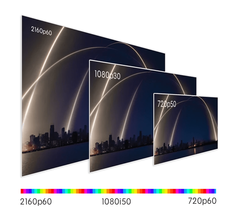 FLOW 2 gir opp- og nedkonvertering mellom 35 videoformater, fra HD til UHD (opptil 3840x2160p60). Den støtter konvertering mellom 12G-SDI og HDMI 4K60, og du kan enkelt velge ønsket utgangsformat med ett trykk.