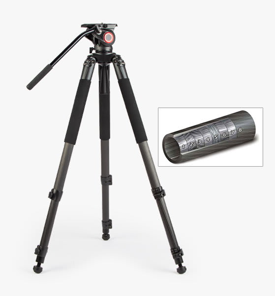 - 8-layer tubular carbon fiber travel tripod